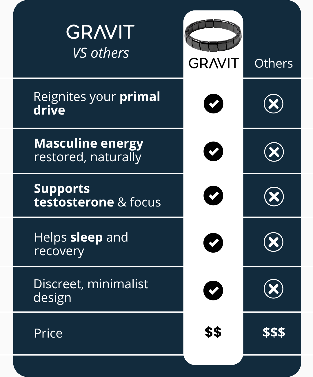 Where supplements spike and crash, GRAVIT provides steady magnetic stimulation. Men report sharper focus, lasting energy, stronger libido, and restored masculine confidence, helping you show up as the man you’re wired to be.
